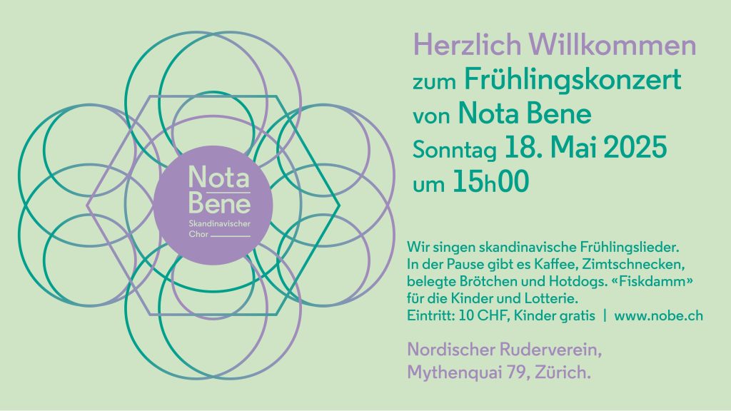 - Söndag 26 maj kl.15:00: traditionell VÅRKONSERT på Nordiska Roddföreningen i Zürich, Mythenquai 79.